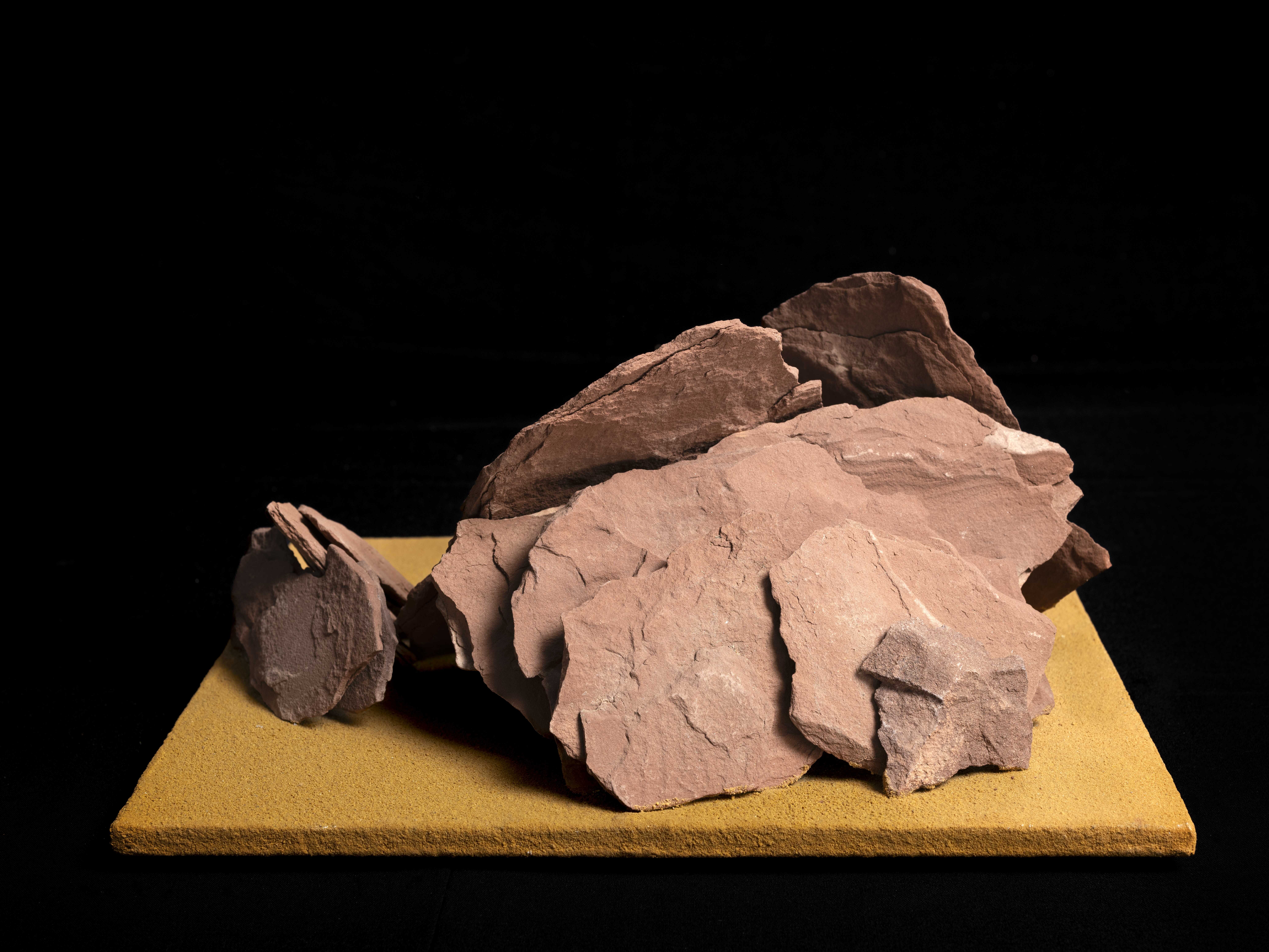 Μακέτα - κόκκινος σχιστόλιθος σε αμμώδες υπόβαθρο / έδαφος ώχρας