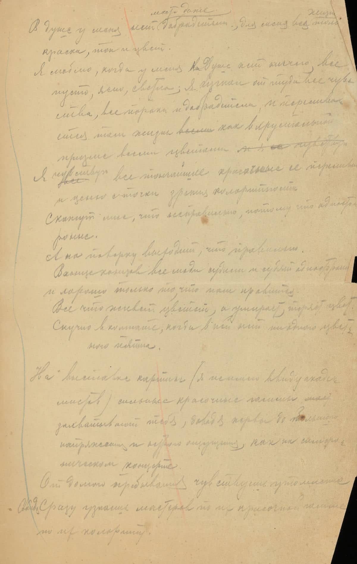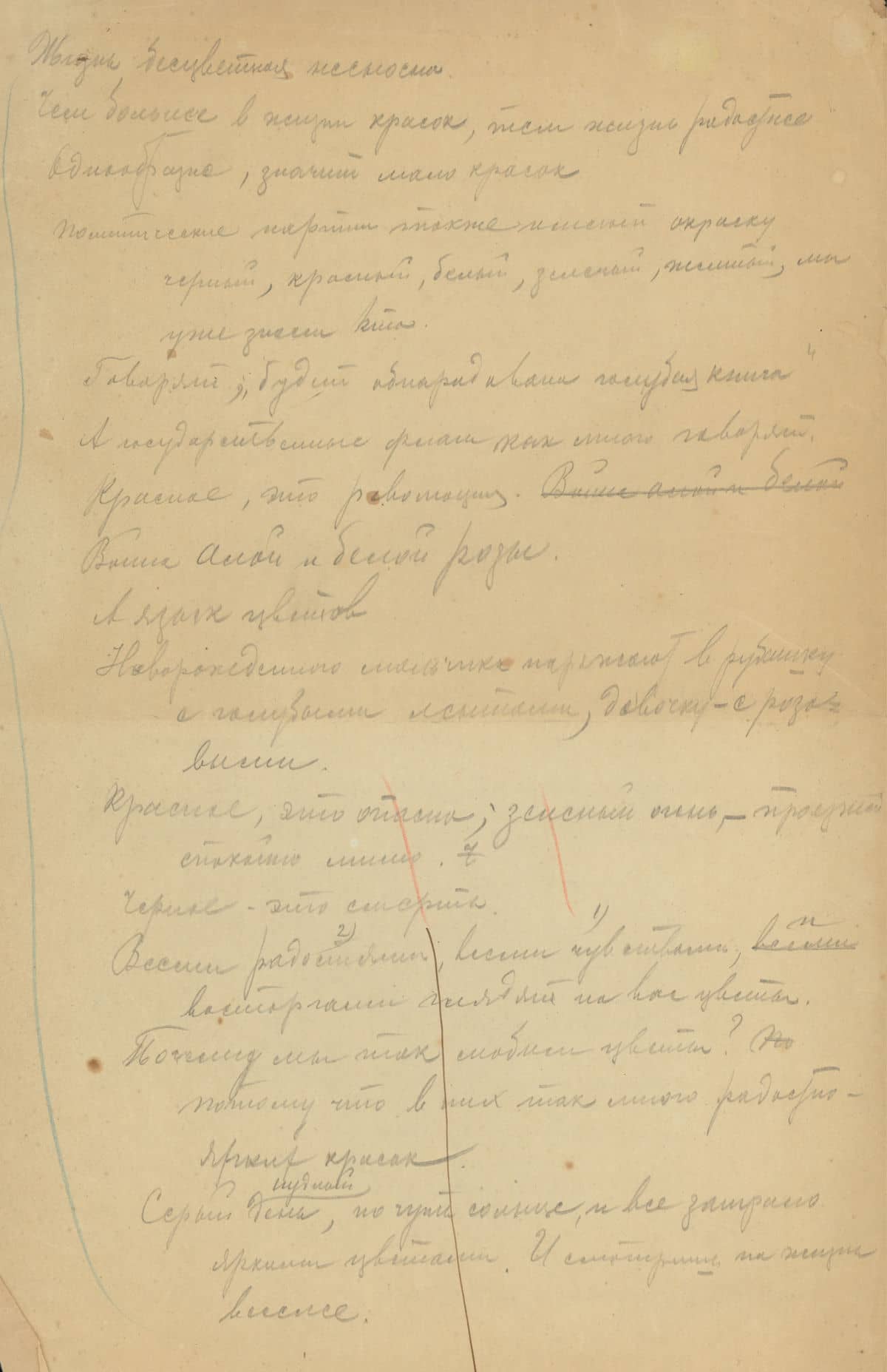 Χωρίς τίτλο. Χωρίς χρονολογία. Χειρόγραφο κείμενο 4 σελίδων. Μολύβι και κραγιόν σε χαρτί. 36 x 22