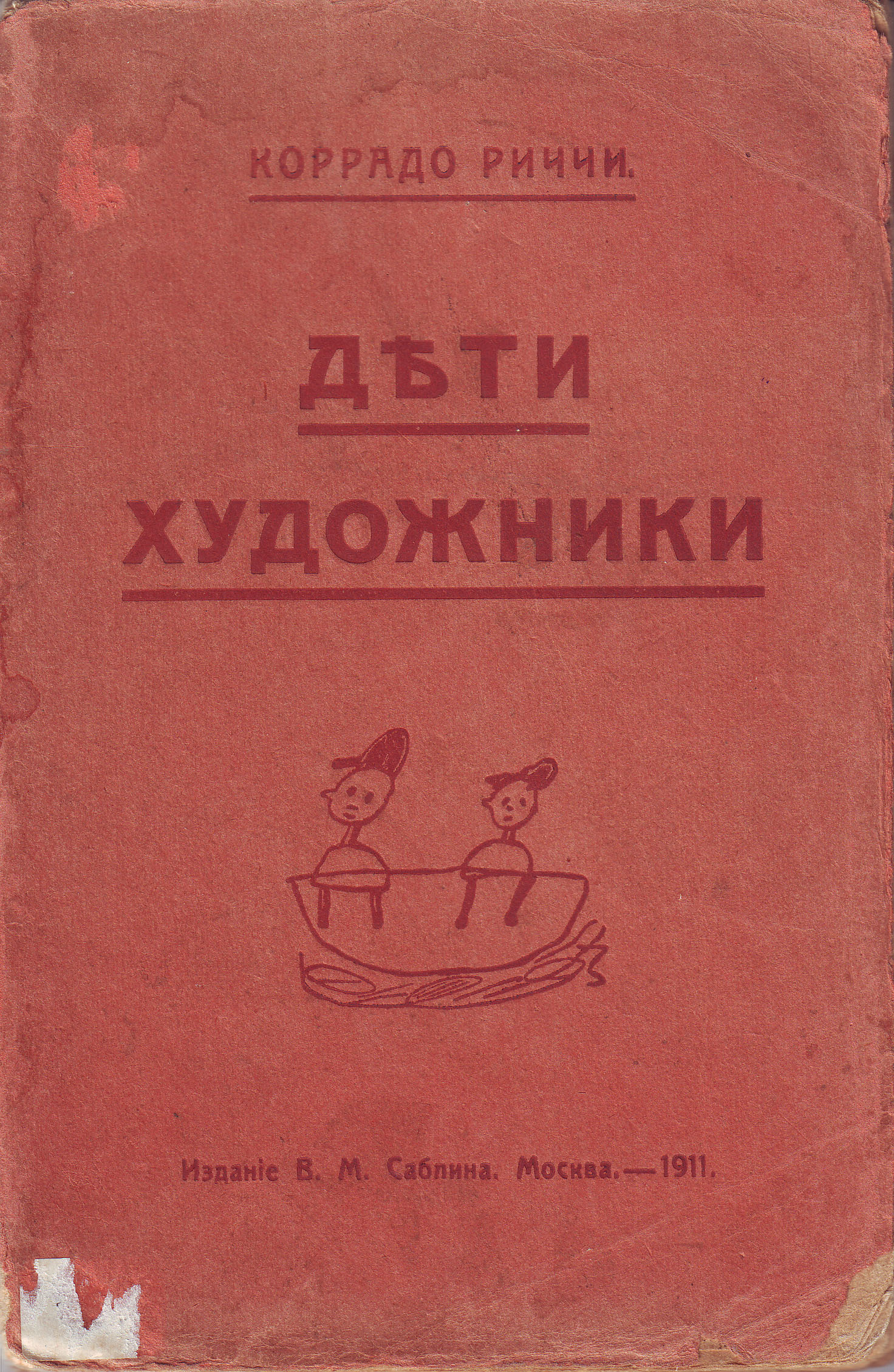 Βιβλίο με τίτλο "Τα παδιά καλλιτέχνες" (Deti Khudozhniki). Περιλαμβάνει εξώφυλλο, οπισθόφυλλο και 84 σελίδες. Στο κείμενο ενσωματώνονται και πολλά σκίτσα. Συγγραφέας: Κορράντο Ρίτσι. Εισαγωγή και μετάφραση από τα ιταλικά: Λ.Γκ.Ορσάνσκι. Εκδόσεις Β.Μ.Σαμπλίν, Μόσχα 1911.