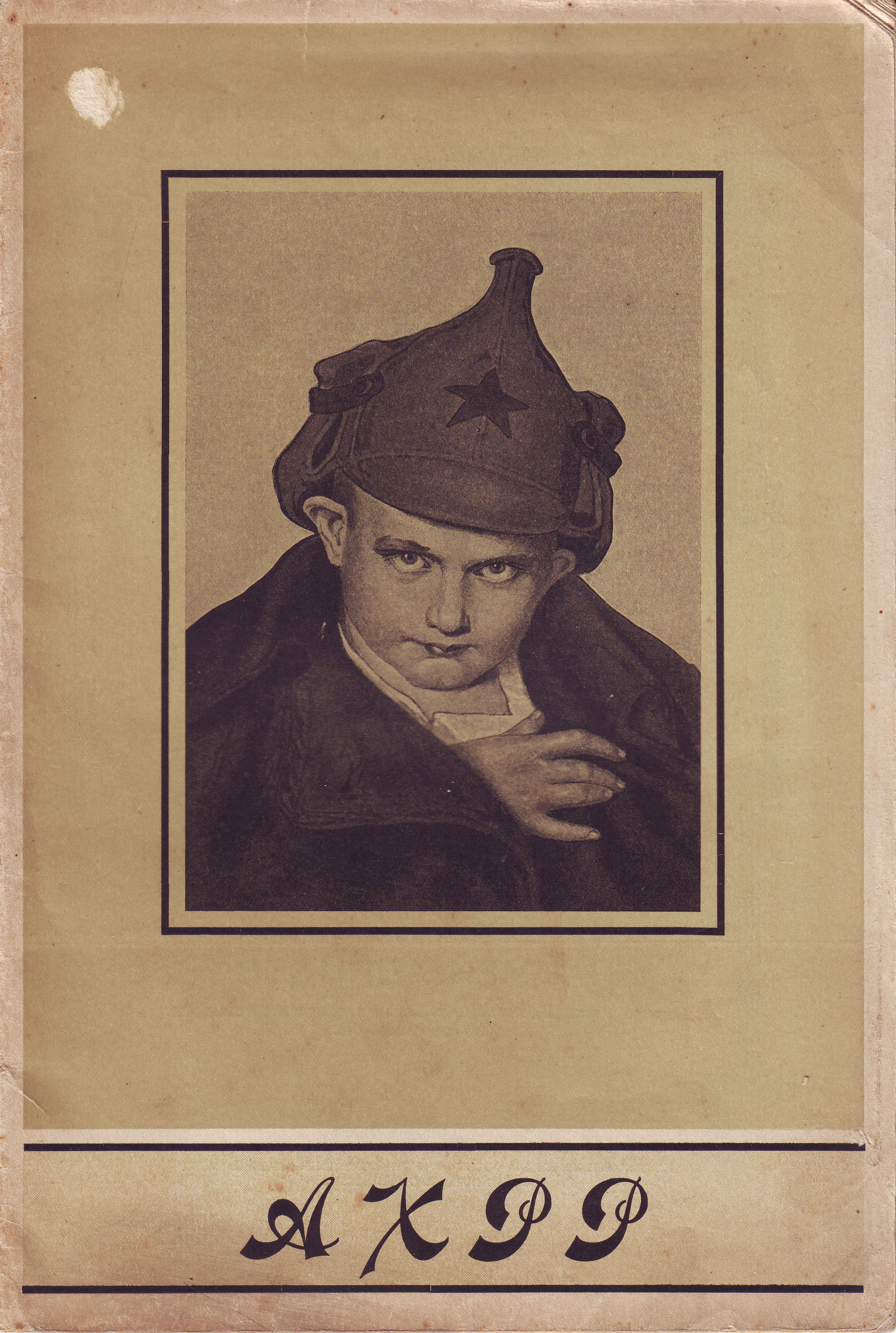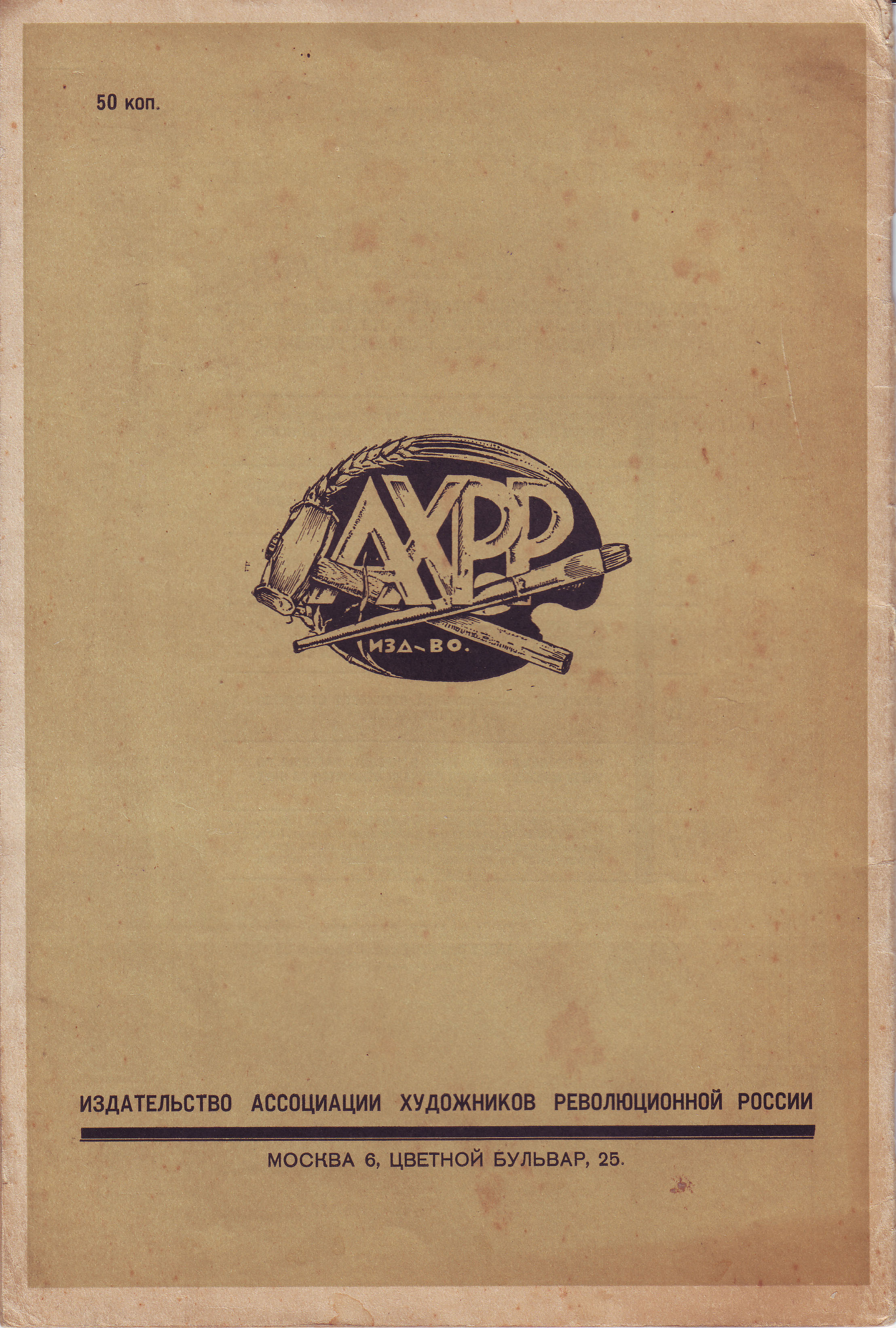 Καλλιτεχνικό περιοδικό με τίτλο "ΑΧΡΡ" (Ένωση Καλλιτεχνών Επαναστατικής Ρωσίας). Είναι έκδοση του περιοδικού Iskusstvo V Massy (Η τέχνη στις Μάζες). Αριθμεί 28 σελίδες, εξώφυλλο και οπισθόφυλλο. Στο εξώφυλλο υπάρχει πορτρέτο παιδικού με καπέλο που φέρει κομμουνιστικό έμβλημα (άστρο). Όλες οι σελίδες έχουν ευρεία εικονογράφηση. Τυπώθηκε σε 5000 αντίτυπα. Τιμή 50 καπίκια.