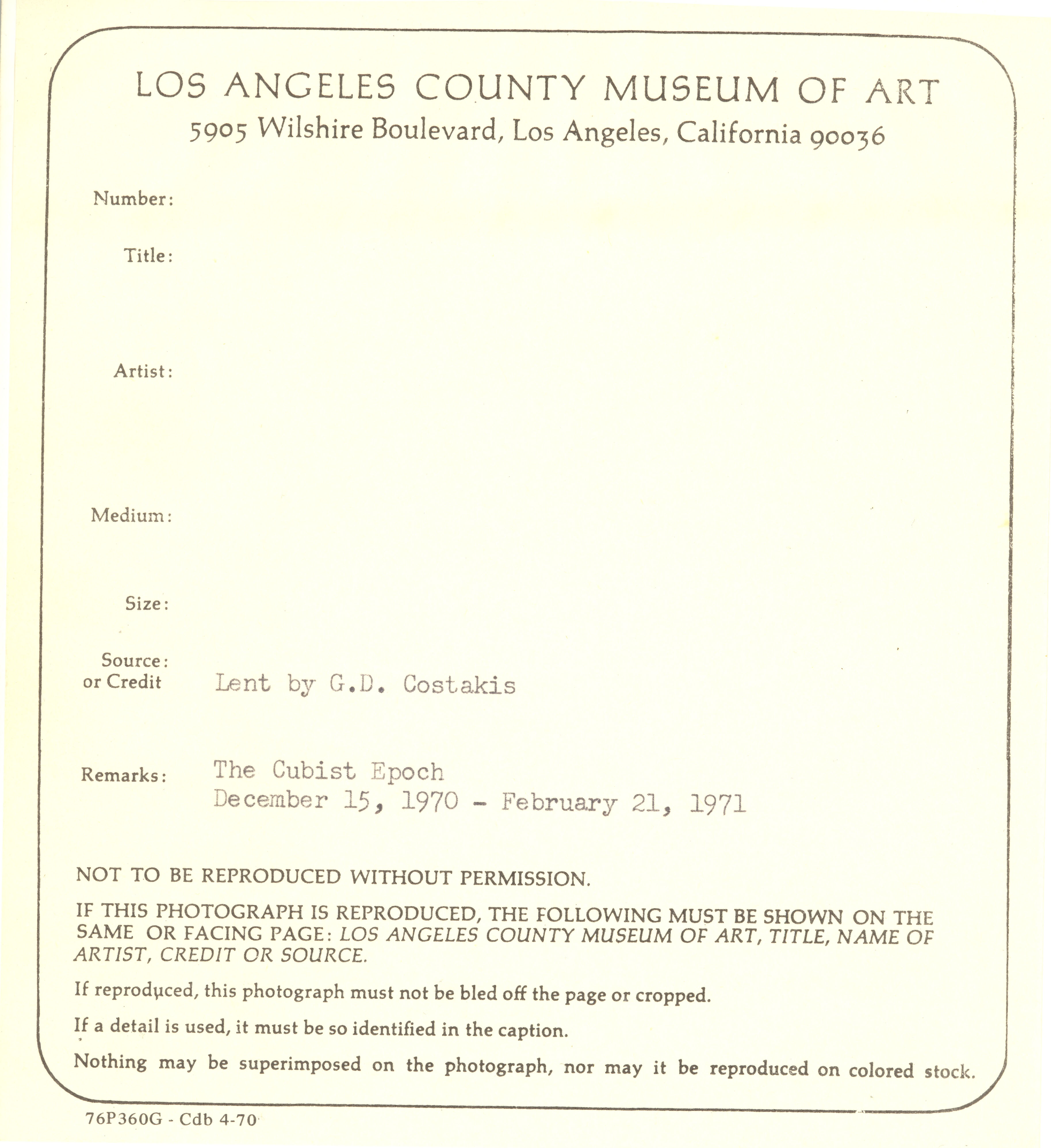 Άποψη της έκθεσης "The Cubist Epoch", Los Angeles County Museum of Art, 1970-1.
