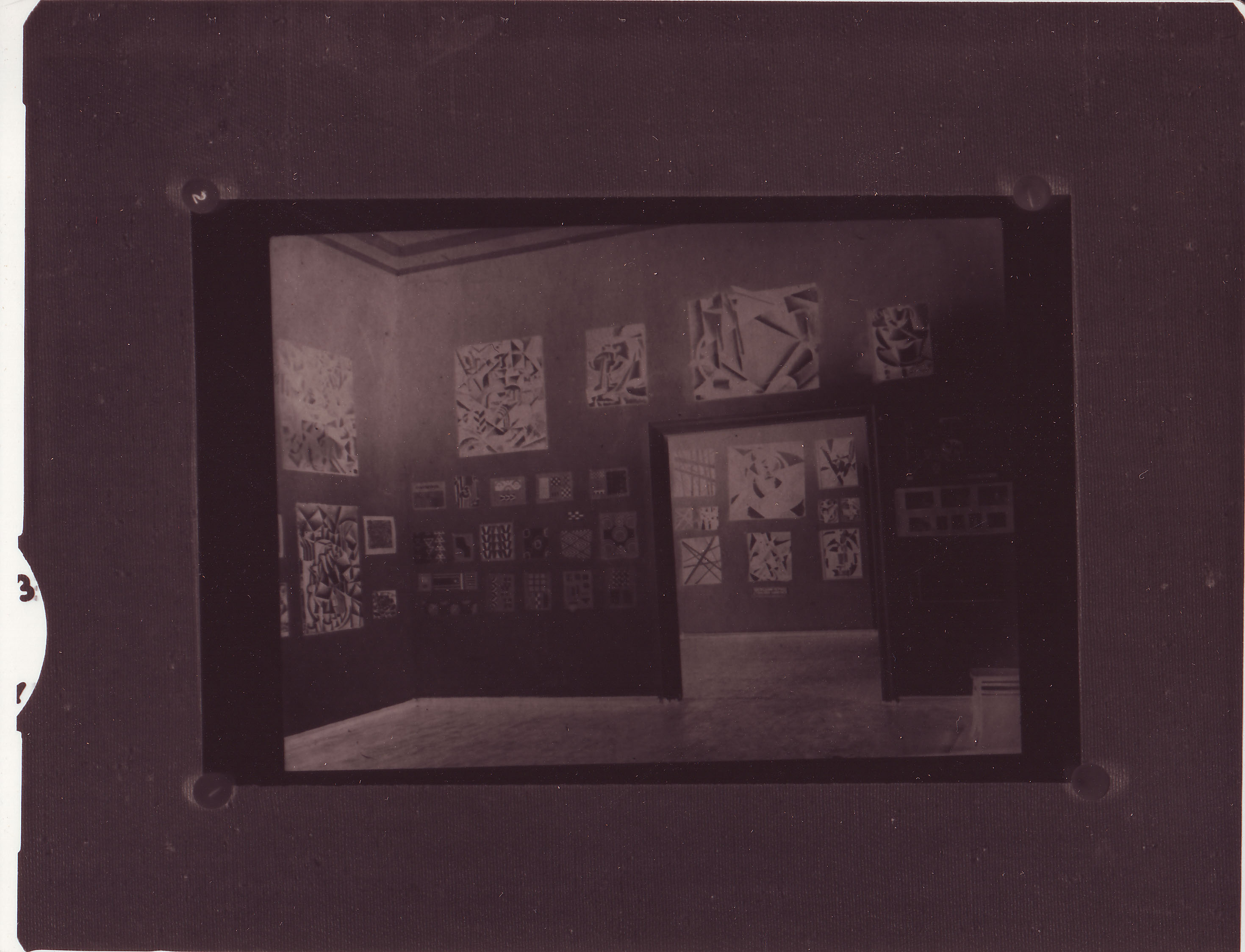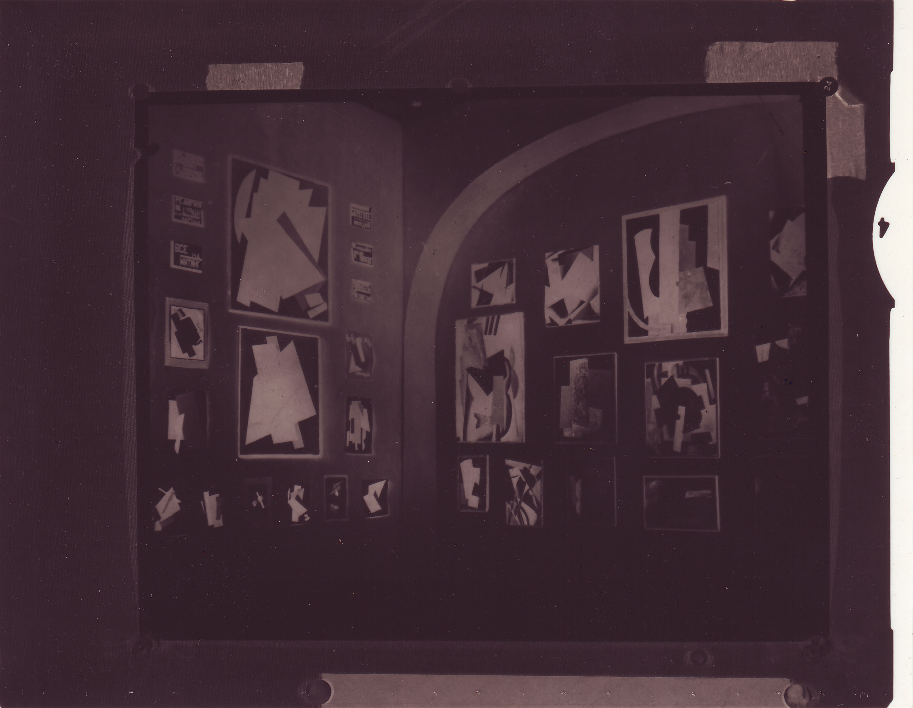 Εικονίζεται άποψη από τη μεταθανάτια αναδρομική έκθεση της Λιουμπόβ Ποπόβα που διοργανώθηκε στη Μόσχα το 1924.
