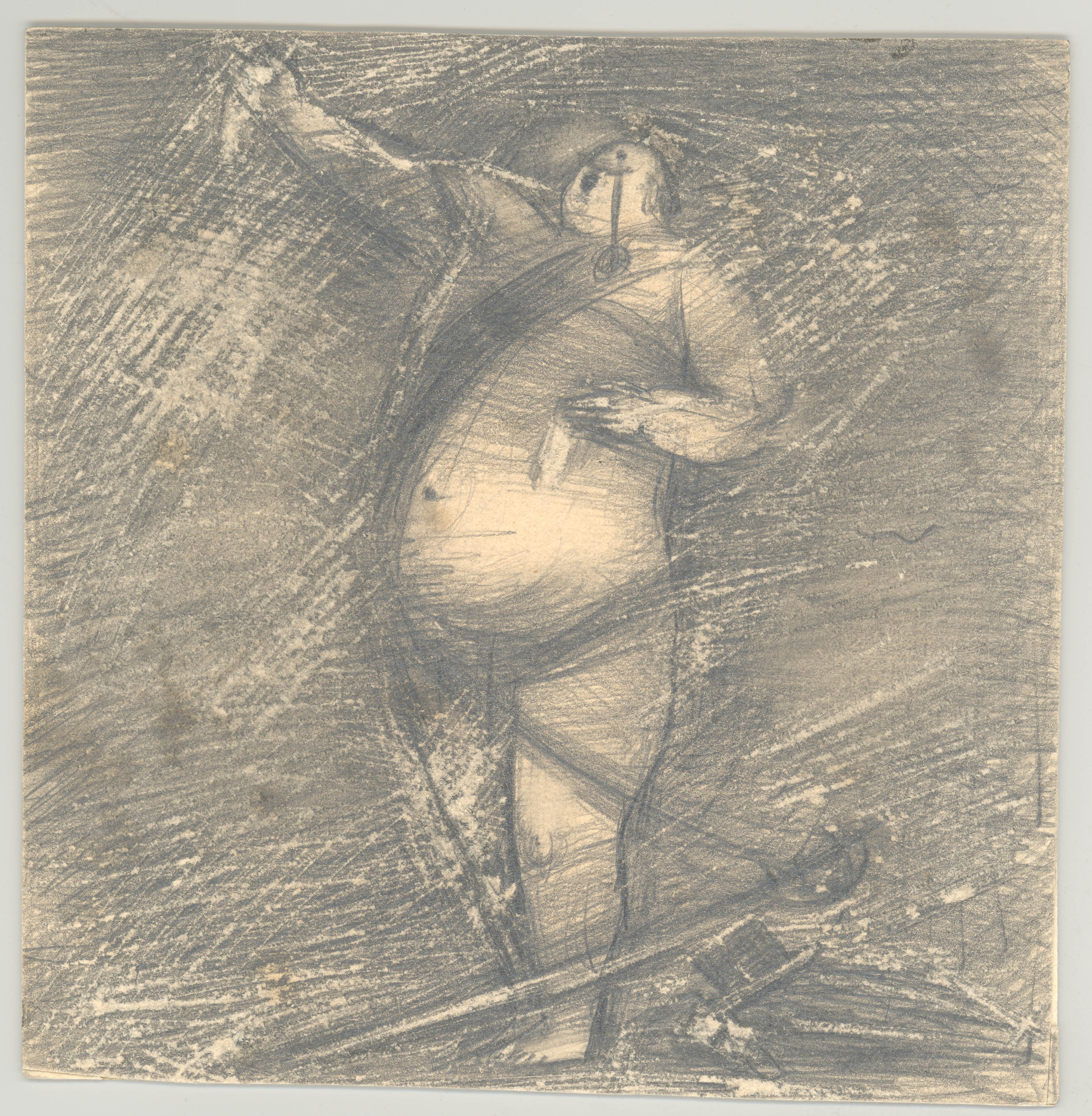 ΣΧΕΔΙΟ ΤΟΥ ΣΟΛΟΜΩΝ ΝΙΚΡΙΤΙΝ, ΜΕ ΜΟΛΥΒΙ, ΑΠΕΙΚΟΝΙΖΕΤΑΙ ΜΙΑ ΑΝΘΡΩΠΙΝΗ ΦΙΓΟΥΡΑ, ΤΟ ΣΧΕΔΙΟ ΕΊΝΑΙ ΕΠΙΚΟΛΛΗΜΕΝΟ ΣΕ ΦΥΛΛΟ ΙΔΙΟΥ ΜΕΓΕΘΟΥΣ, ΣΤΗΝ ΠΙΣΩ ΟΨΗ ΠΑΡΕΜΒΑΛΛΕΤΑΙ ΧΕΙΡΟΓΡΑΦΗ ΣΗΜΕΙΩΣΗ ΜΕ ΜΕΛΑΝΙ, 2 ΦΥΛΛΑ