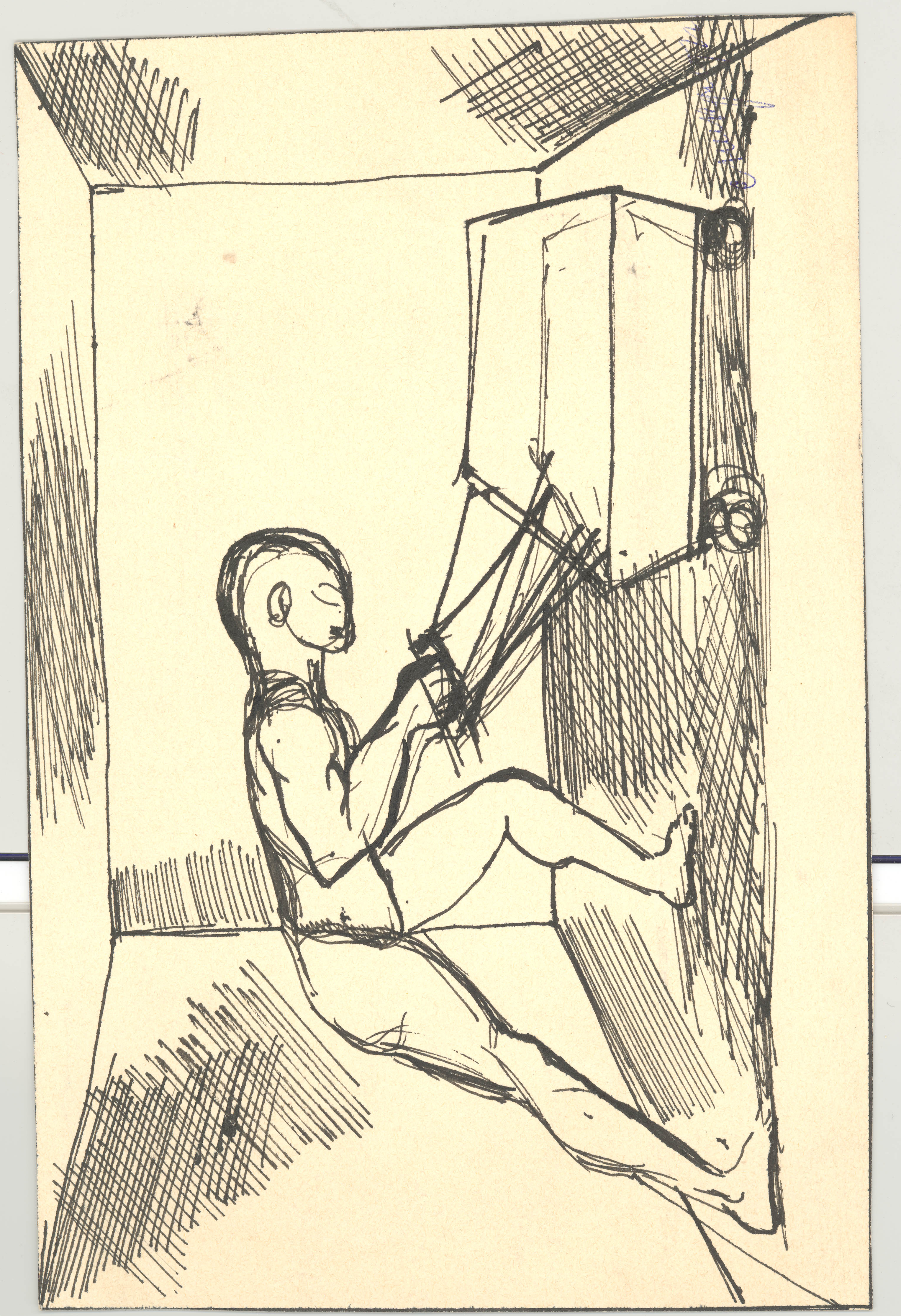ΣΧΕΔΙΟ ΤΟΥ ΣΟΛΟΜΩΝ ΝΙΚΡΙΤΙΝ, ΜΕ ΜΕΛΑΝΙ, ΑΠΕΙΚΟΝΙΖΕΤΑΙ ΜΙΑ ΑΝΘΡΩΠΙΝΗ ΦΙΓΟΥΡΑ ΝΑ ΚΡΑΤΑ ΈΝΑ ΚΑΡΟΤΣΙ, ΣΤΗΝ ΠΙΣΩ ΟΨΗ ΤΟΥ ΣΧΕΔΙΟΥ ΠΑΡΕΜΒΑΛΛΟΝΤΑΙ ΧΕΙΡΟΓΡΑΦΕΣ ΣΗΜΕΙΩΣΕΙΣ ΜΕ ΜΟΛΥΒΙ, 1 ΦΥΛΛΟ