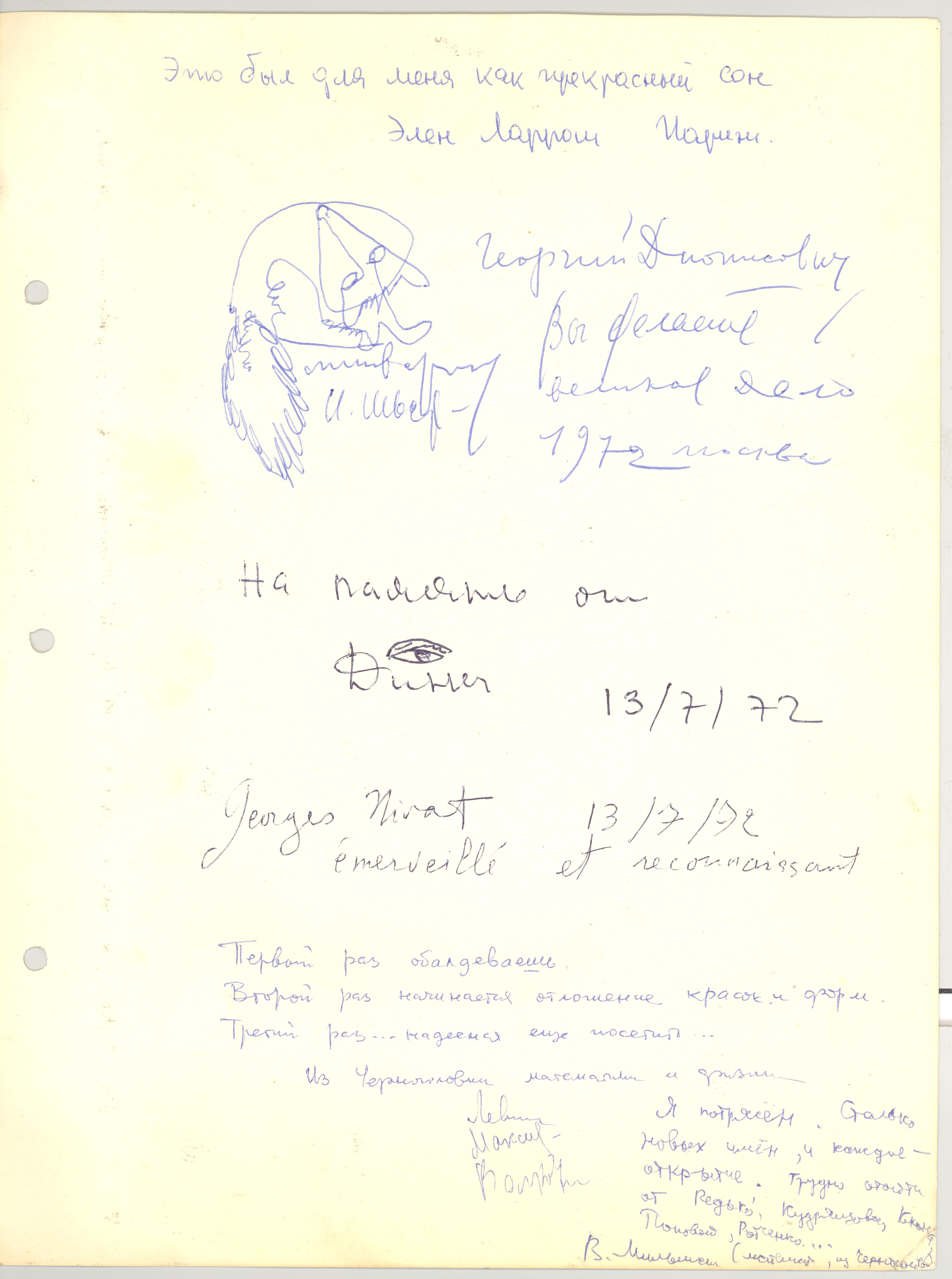 ΦΥΛΛΟ ΑΠΌ ΤΟ ΒΙΒΛΙΟ ΕΠΙΣΚΕΠΤΩΝ ΣΤΟ ΔΙΑΜΕΡΙΣΜΑ ΤΟΥ ΓΕΩΡΓΙΟΥ ΚΩΣΤΑΚΗ ΣΤΗ ΜΟΣΧΑ