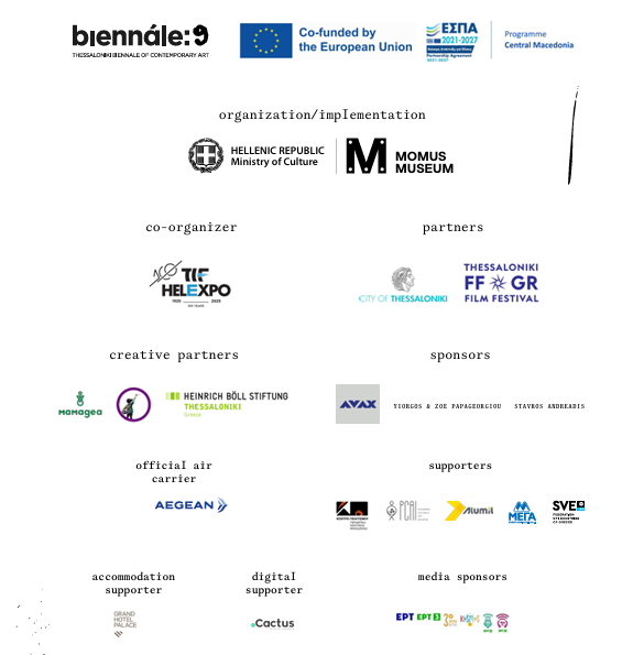 The Thessaloniki Biennale of Contemporary Arts is co-financed by the European Union (NSRF – “Central Macedonia” Operational Programme).